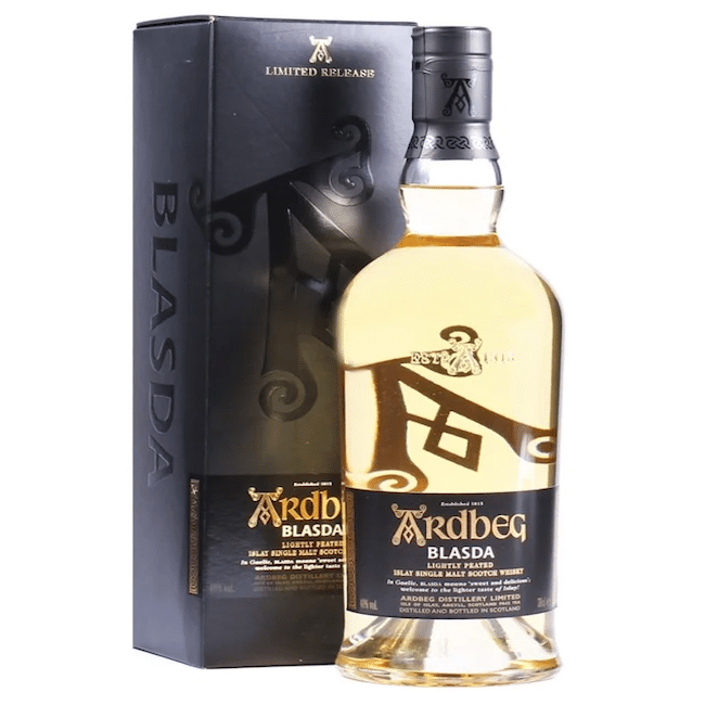 Blasda is a lightly peated whiskey from Ardbeg. This bottling, was done specifically for the Japanese market and the box included denotes the location source.