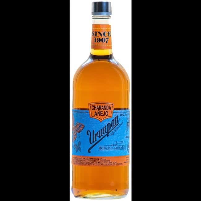 Uruapan Charanda Añejo is a premium Mexican sugarcane spirit from Michoacán, crafted from 50% estate-grown cane juice and 50% molasses. Aged for 22 months in ex-bourbon barrels, it features notes of toasted coconut, clove, tropical fruit, and light smoke. This 46% ABV rum offers a complex, slightly dry finish.